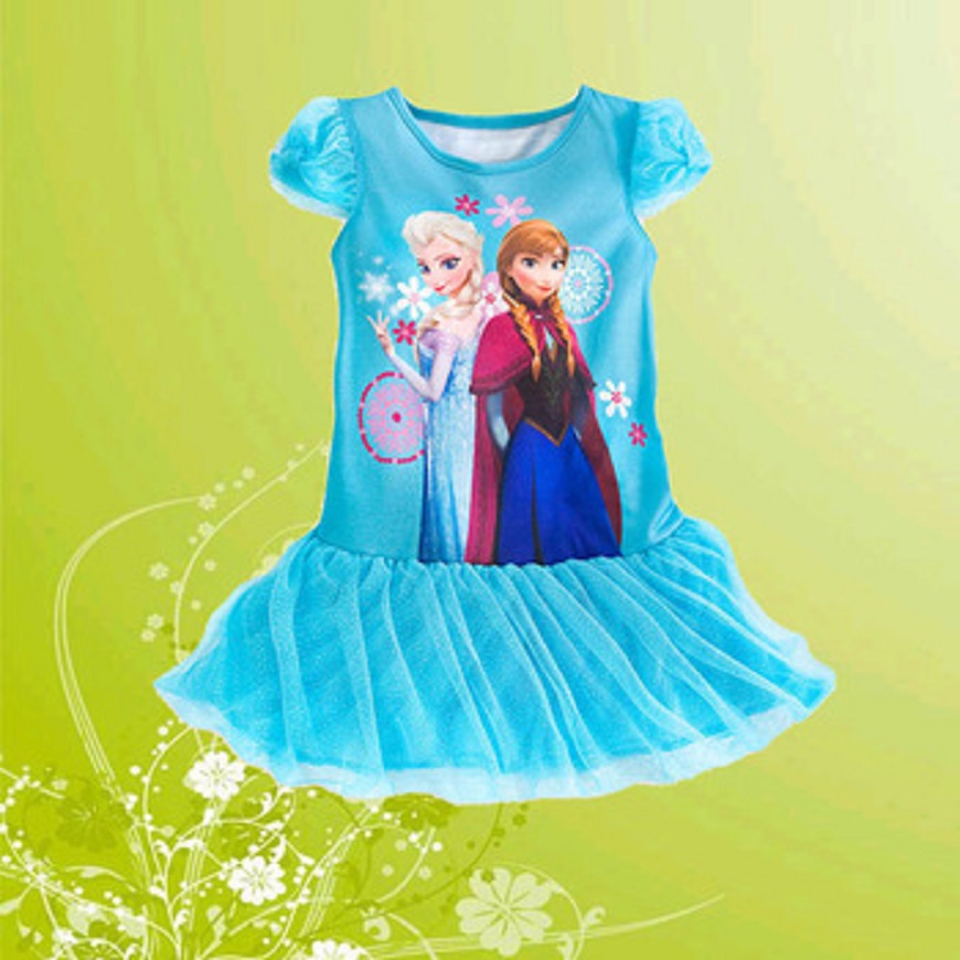 2014 New Arrival Children Dress Frozen Anna Elsa Sky Blue Short Sleeve Nightgown Tutu Dress Girls Nightshirt