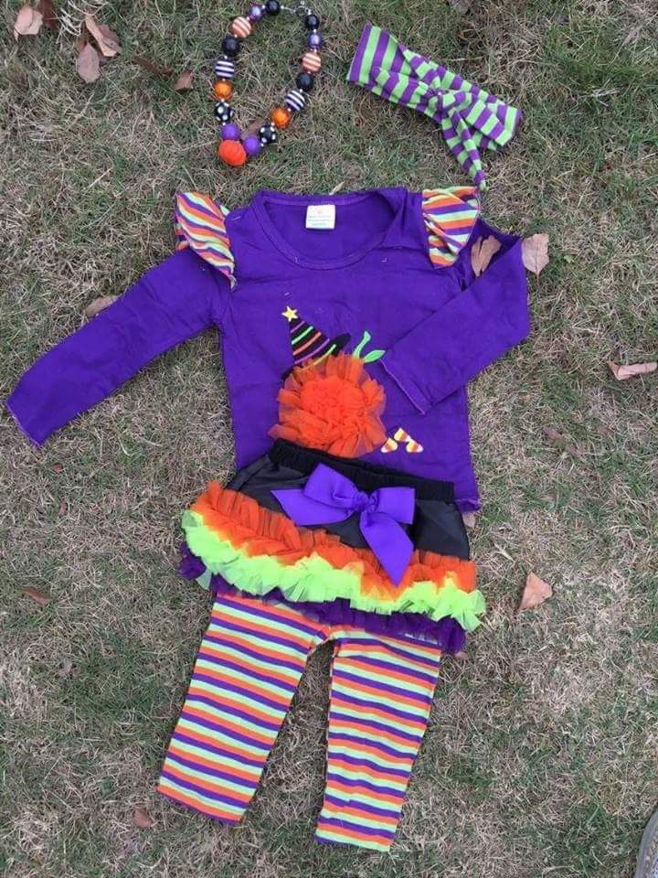 2T Purple Set Halloween Outfits Boutique Clothes Witch Outfit Skirt Leggings