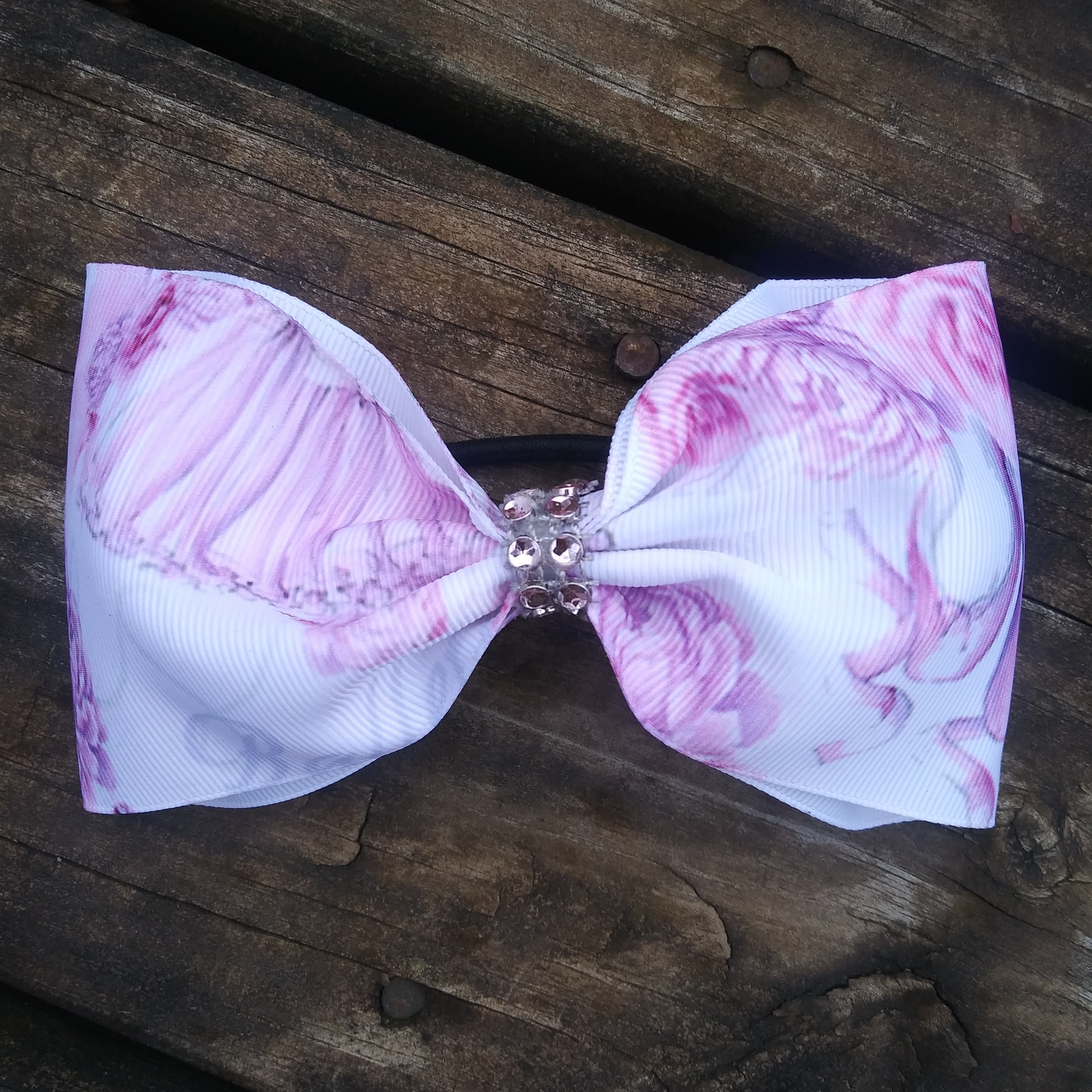 This is an adorable bow made with ballerina ribbon. Your little dancer will love this bow and it is perfect to fit over their buns for dance class. Comes on a ponytail elastic, but can change that on request.
